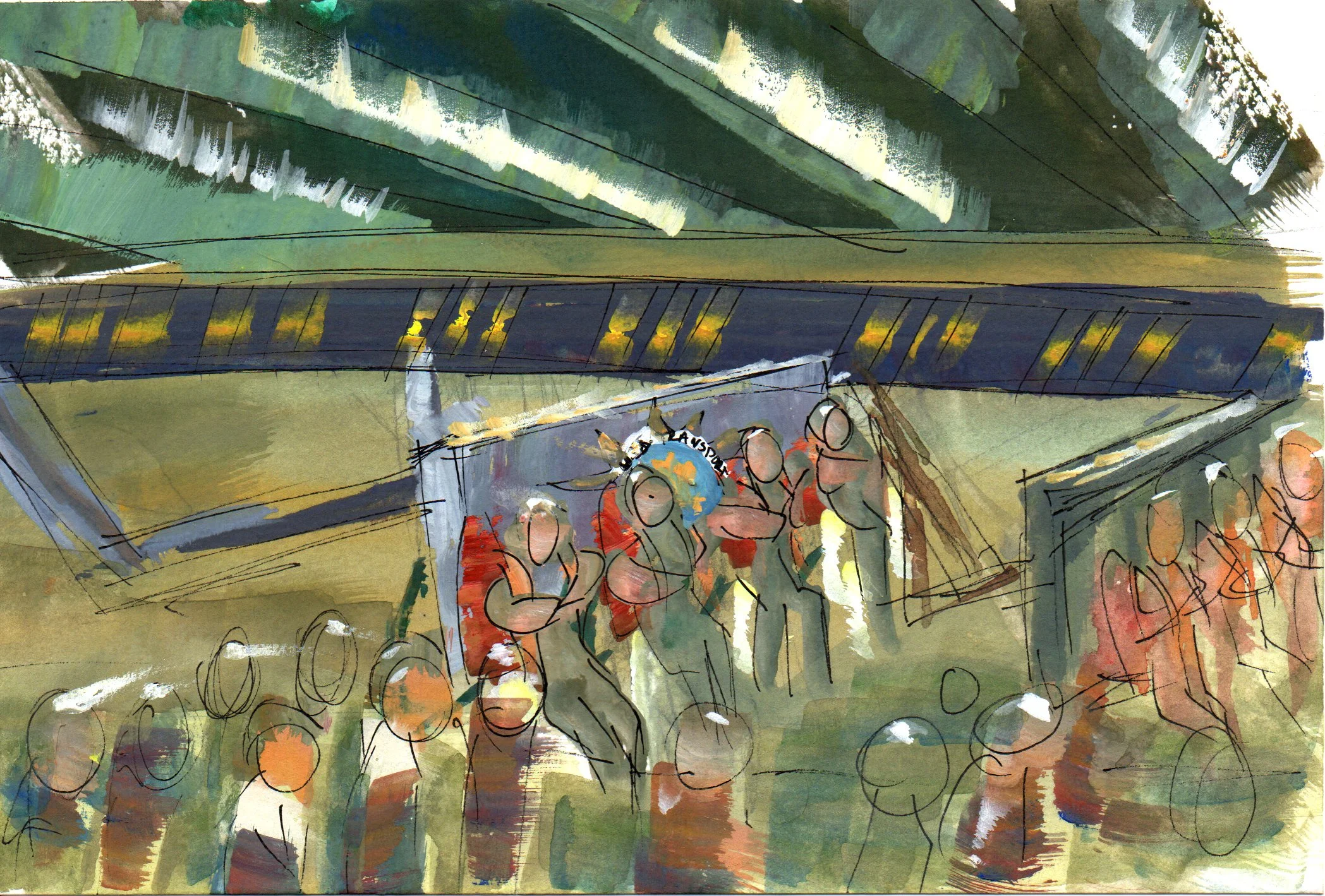 After boarding, the jetpacks move into the hangar bay. With the countdown complete, riders lift off—only for a sudden malfunction to send them off course and into the first show building.Show Building 1: Fields & Streams
